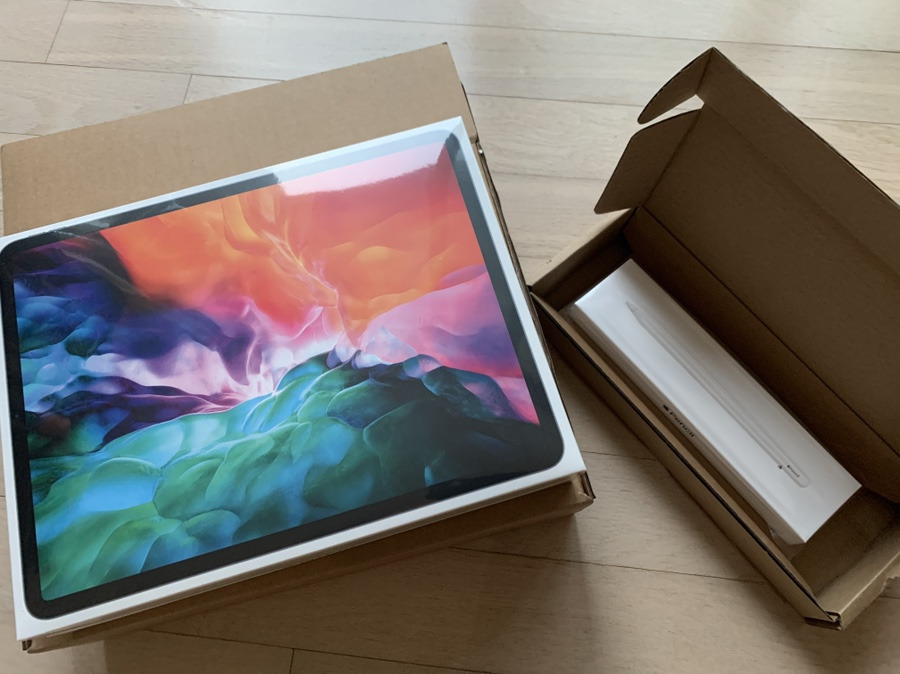 새롭게 받아든 제품에서는 큰 문제가 없었기에, 곧장 기존의 것들을 환불하고 새 것들을 받아들었습니다:) 데자뷔같지만, 위의 것들과는 다른 아이패드 프로 4세대 12.9형과 애플펜슬 2세대입니다. 이미 가로수길 애플 스토어에서 이상이 없는지 확인을 진행해서 비닐을 벗겨보는 설렘은 없었네요:)