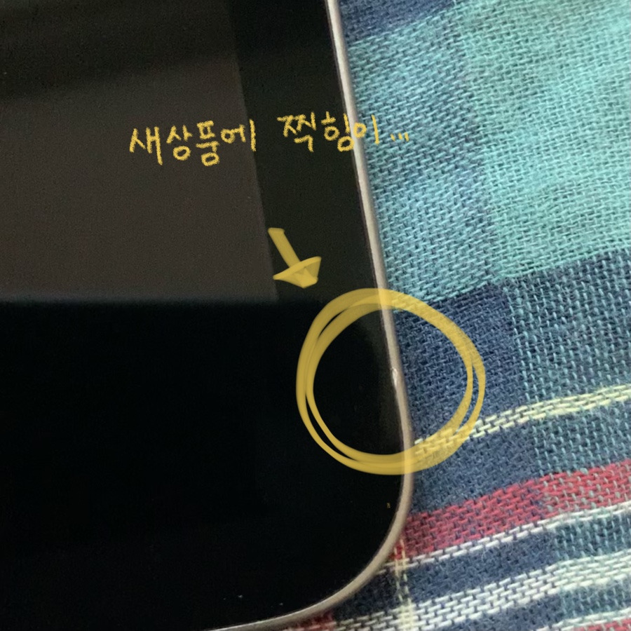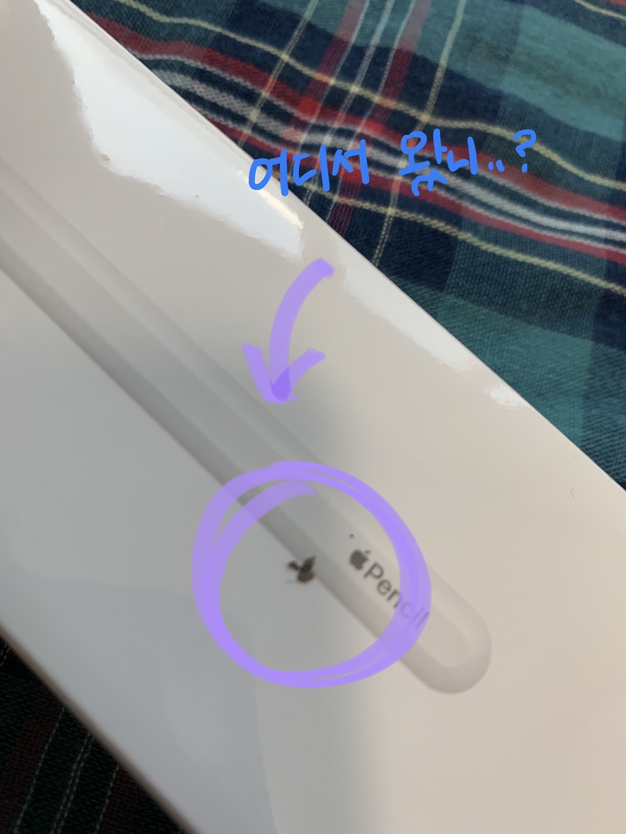 즐거운 마음으로 언박생을 하던 저는, 곧 당황스러운 상황을 맞이하게 되었습니다. 처음 비닐을 벗겨본 새상품인데 아이패드 본체의 프레임에는 곁눈질로 봐도 보이는 찍힘이 있었고, 아이패드가 도착할 때까지 박스도 뜯어보지 않고 있었던 애플펜슬에는 포장 비닐 속에 벌레가 압사당해서 있었습니다.