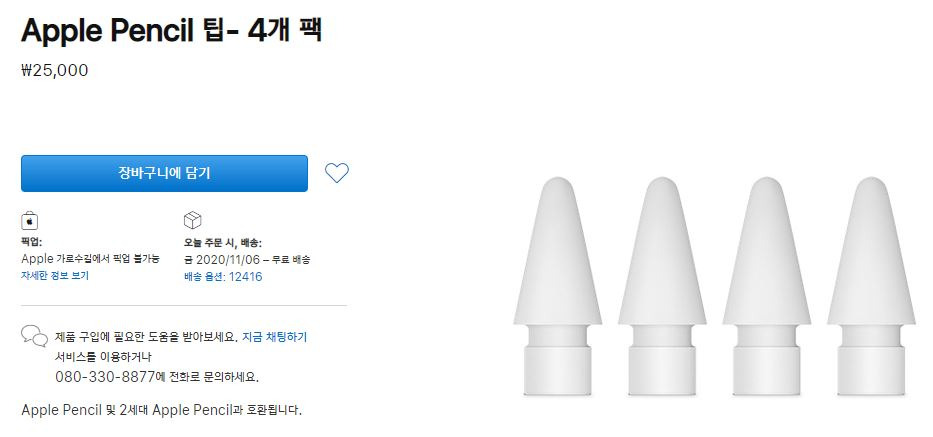 공식 홈페이지에 보면 애플펜슬 여분 촉이 4개 세트로 판매하고 있습니다. 4개에 25,00원으로 1개에 6,250원입니다. 비정품 펜촉도 4,500원하는데, 6,250원이면 나쁘지는 않구나 생각이 듭니다. 이렇게 애플에 길들여지는 것인가 생각을 하지 않을 수 없었습니다. (저는 현재 4,500원 했던 스코코 애플펜슬 펜촉을 사용하고 있는데, 정품 가격도 그렇게 비싸지는 않아서 다음에는 아래의 세트를 사서 써볼까 싶기도 합니다.)
