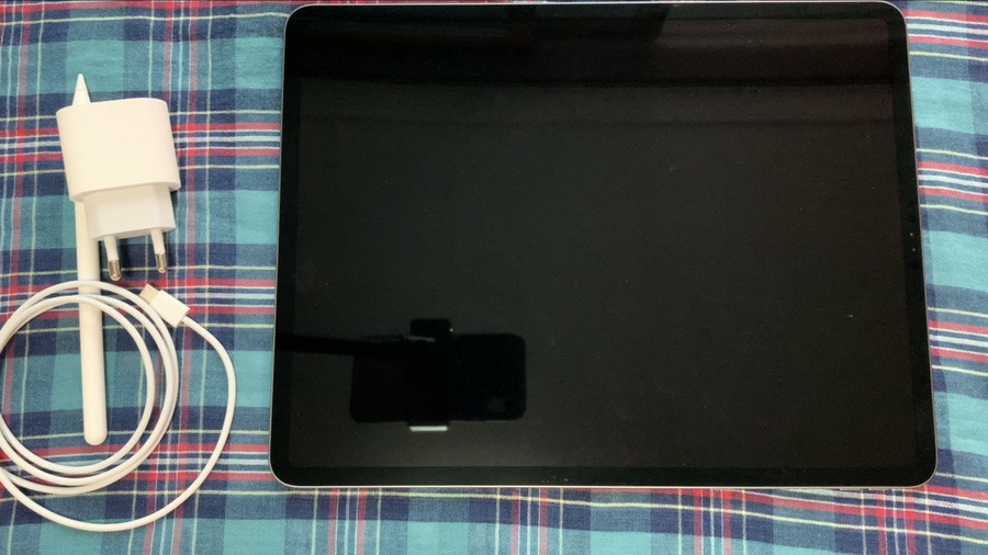 아이패드 프로 4세대의 구성품은 아래와 같습니다. 비닐에 쌓인 본체와 설명서 등이 담긴 종이묶음, 충전 어댑터와 충전 케이블을 제공합니다. 아이폰과는 다르게 충전 어댑터를 제공해주고, 충전 케이블은 c to c 타입입니다. 충전을 하는 곳과 충전 어댑터를 연결하는 곳이 모두 c 타입으로 되어있습니다. 충전 케이블이 모두 C to C 인 거 진짜 정말 편해요. 최근 아이폰은 모두 c to c 라고 하던데, 어서 핸드폰을 바꿔야 겠다는 생각 뿐입니다.