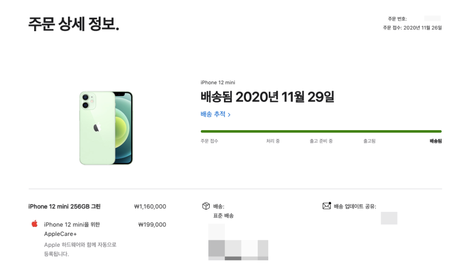 당시에 아이폰 붐같이 정말 인기가 많았던 상황이라, 1~2주는 걸릴 것을 예상하고 주문을 했었던 것이었는데요. 2020년 11월 28일 토요일에 도착을 했습니다!! (사진 상에서는 11월 29일로 되어있는데, 일요일이거든요. 배송된 다음날로 측정이 된 것이 아닐가 생각해봅니다.)