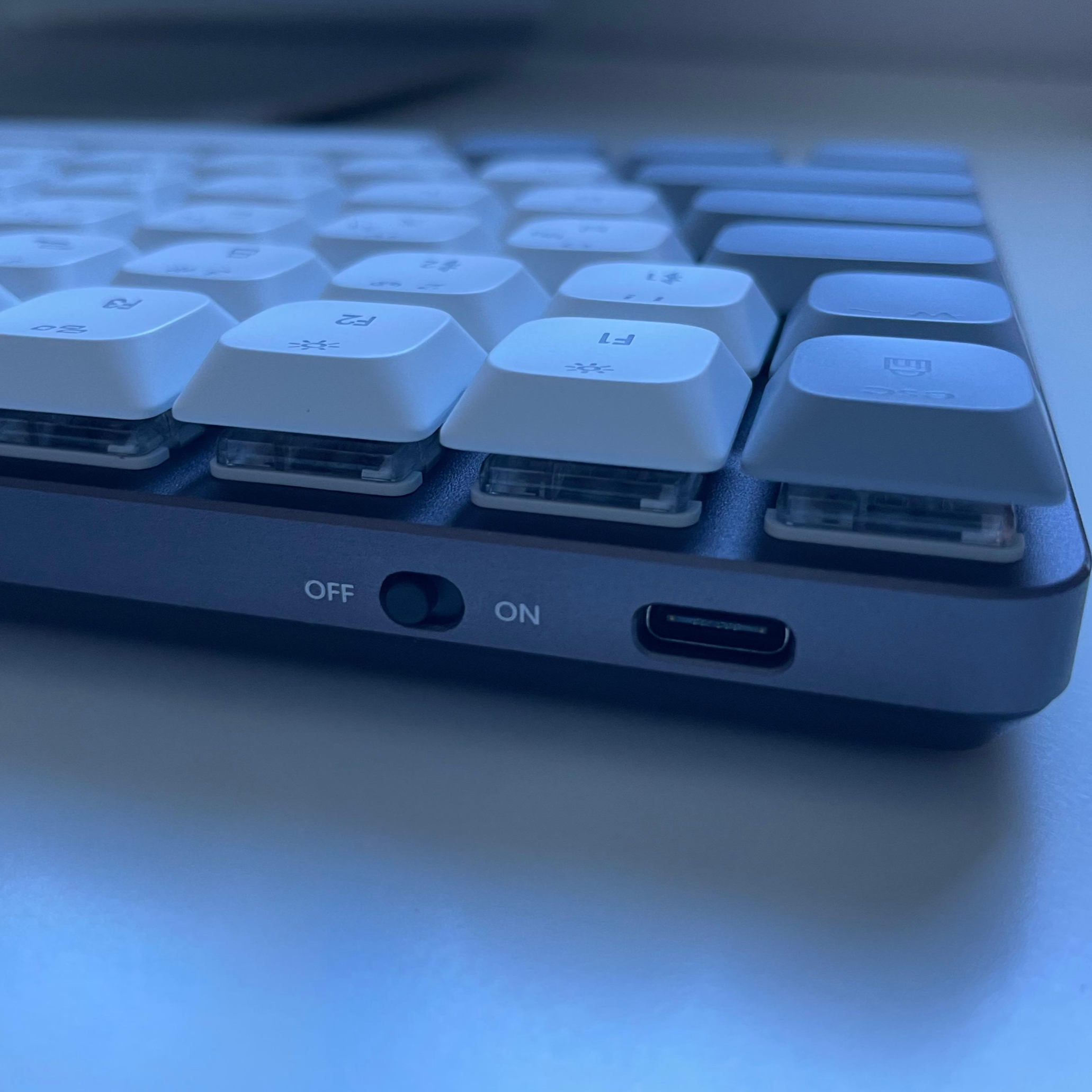 마지막으로 왼쪽 상단에 ON/OFF 를 할 수 있는 버튼과 충전 및 연결을 할 수 있는 홈이 있습니다. 그런데 사용해 보니, 기본적으로 일정 시간이 지나면 자동 절전 상태가 되어서 쓸 때 마다 껐다가 켰다가 하지 않아도 될 것 같아요. 절전 상태에서 깨어나는 속도도 그렇게 느리지 않아서 크게 거슬리지 않습니다. 충전 잭도 좌측 상단에 있어서 충전하면서도 동시에 사용할 수 있을 것 같습니다. 사실 사용하다가 갑자기 배터리가 닳아서 꺼지는 것 만큼 거슬리는 것도 없잖아요. 건전지로 사용되는 키보드는 진짜 갑자기 건전지가 없어서 해당 키보드를 사용하지 못하게 될 때 꽤나 짜증이 나는데요. 이건 그럴 일이 없을 것 같아서 안심입니다. 바로 노트북에 연결해주면 되니까요:)