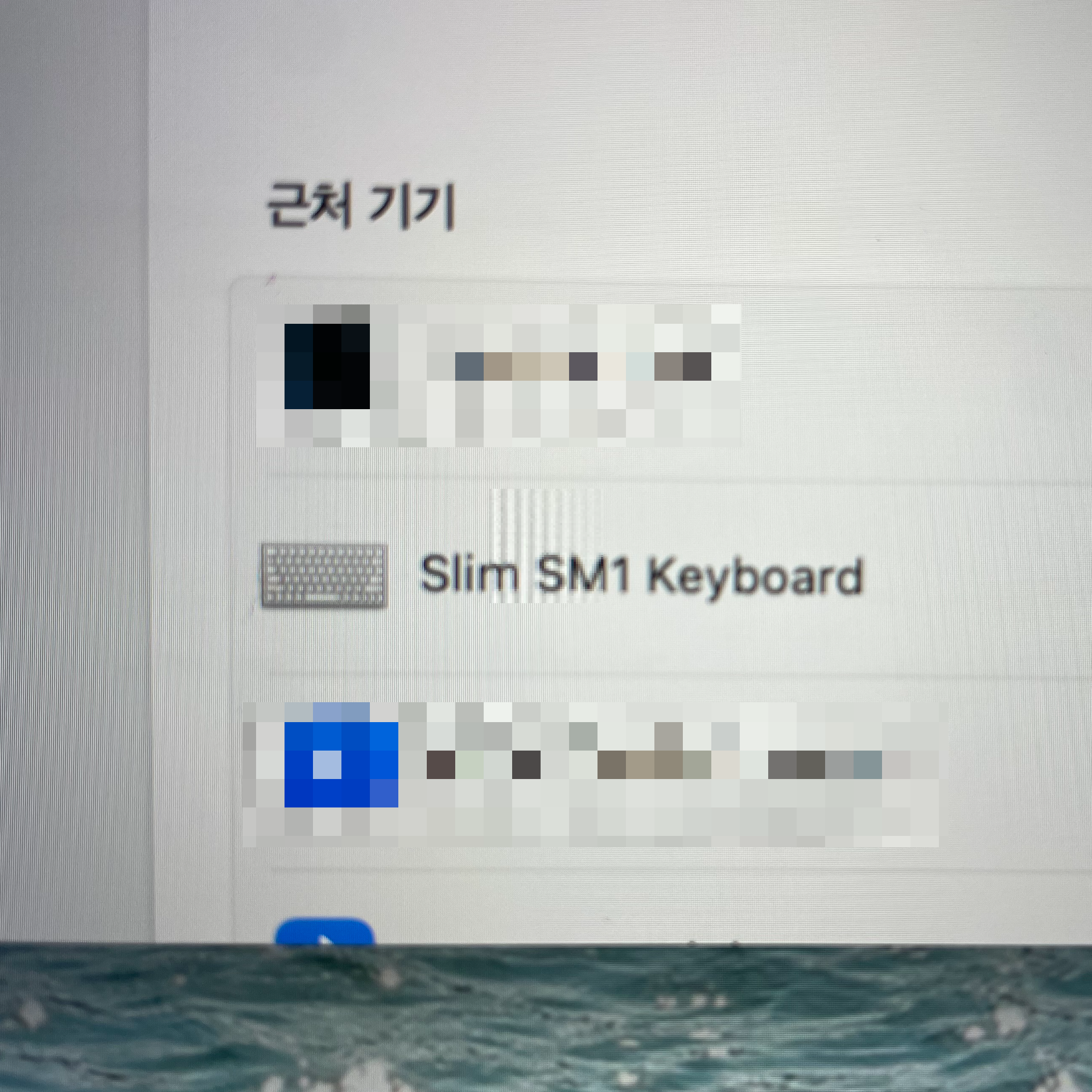 처음 키보드를 제품과 연결하기 위해서 제품을 켜면, 이렇게 블루투스 1 번 키가 반짝반짝 하며 연결을 기다리고 있다고 표시를 해 줍니다. 그래서 노트북에서 블루투스 연결을 위해서 기기를 들어가 보면, 'Slim SM1 Keyboard' 라고 해당 키보드의 이름이 나와요. 바로 연결해주면 별 탈 없이 잘 연동이 됩니다. 블루투스 2번 으로 등록을 하고 싶을 때에는 'fn + 2' 를 한 3초 정도 꾸욱 누르면 2번 키가 반짝반짝 하면서 블루투스 연결을 위해서 대기를 합니다. 그러면 키보드와 연결을 하기 위한 디바이스에서 블루투스 환경으로 들어가서 똑같이 해당 키보드 이름을 누르면 바로 연결이 돼요. 편하고 쉬운 연결 방법이었습니다.